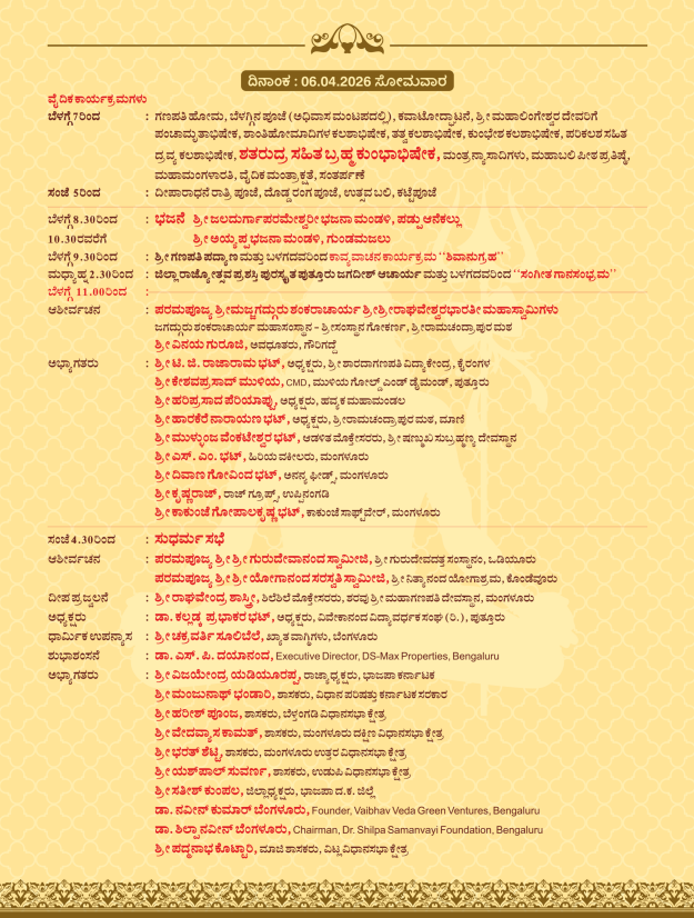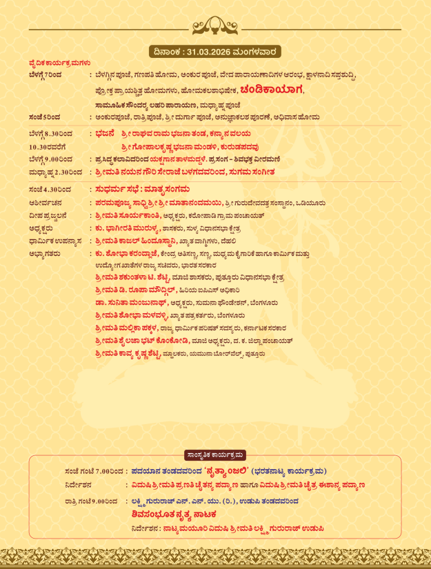 | 17 | Annadana Seva on Pratishta & Brahmakalasha Days | 3,50,000 |
